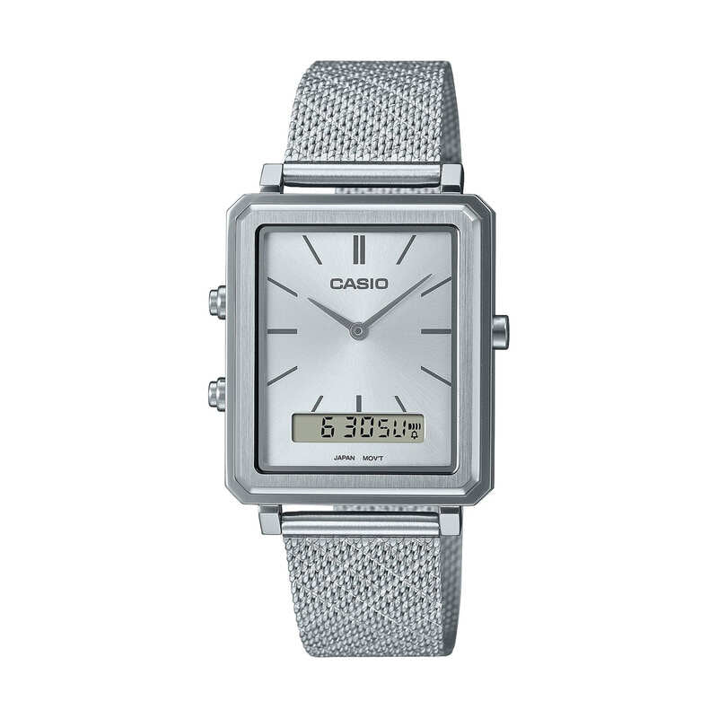 Casio Men's Analog-Digital Watch MTP-B205M-7E Silver Stainless Steel Mesh Band Watch for men