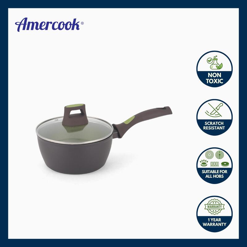 Amercook Avocado 18cm Non-Stick Saucepan – Lava Stone Coating, Induction Ready, Toxin-Free, All-Stove Compatible