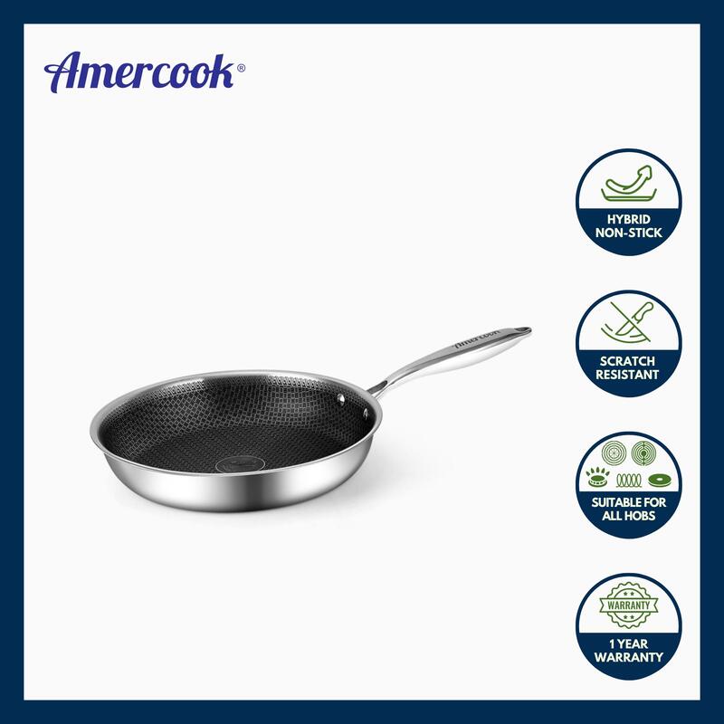 Amercook Aristo Honeycomb Stainless Steel Non-Stick Frying Pan – Induction Ready, Scratch Resistant, 20/24/28cm