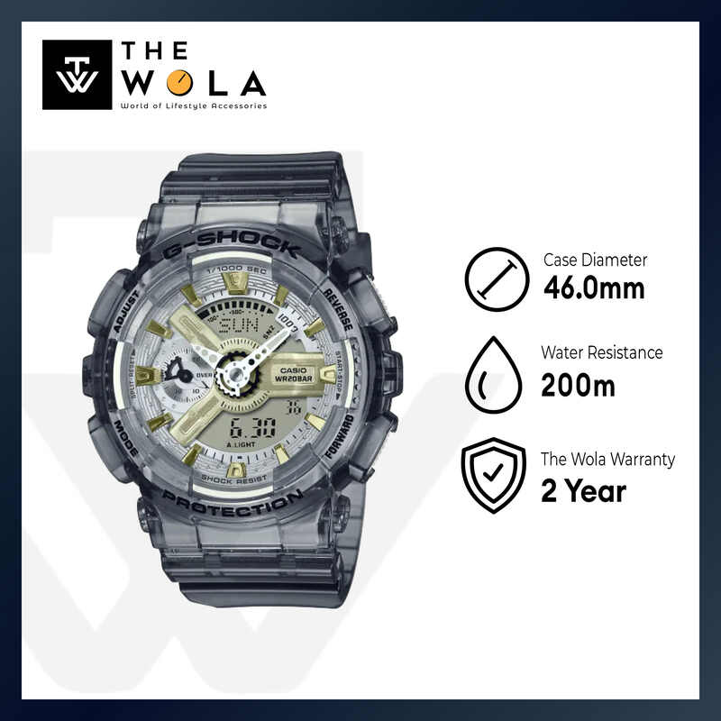 Casio G-Shock Women's Analog-Digital Watch GMA-S110GS-8A Grey Skeleton Resin Band Ladies Sport Watch
