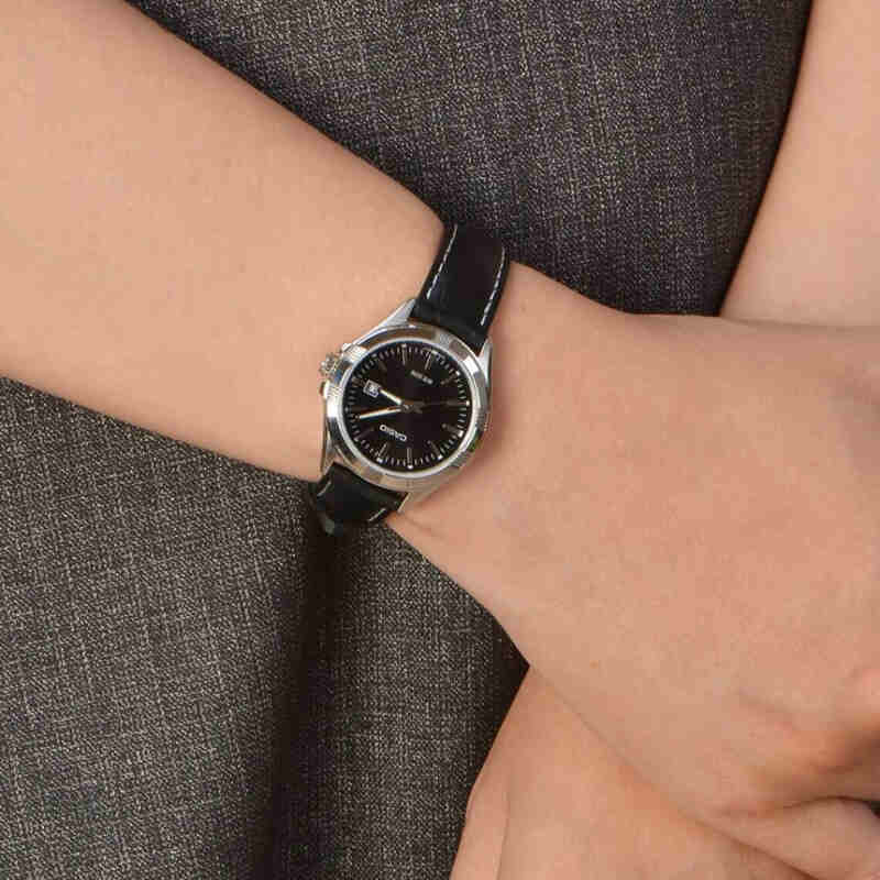 Casio LTP-1308L-1AV Women Analog Watch with Black Leather Band