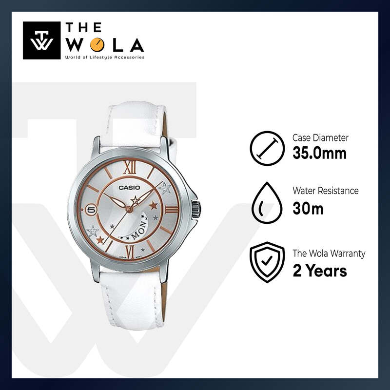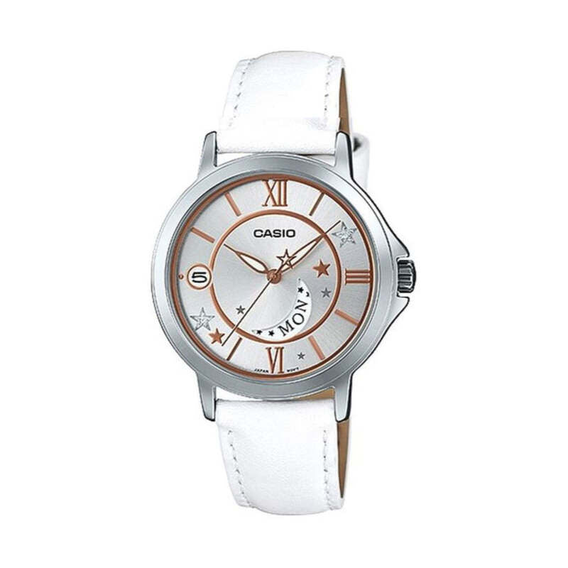 Casio LTP-E123L-7A Women Analog Watch with White Leather Band