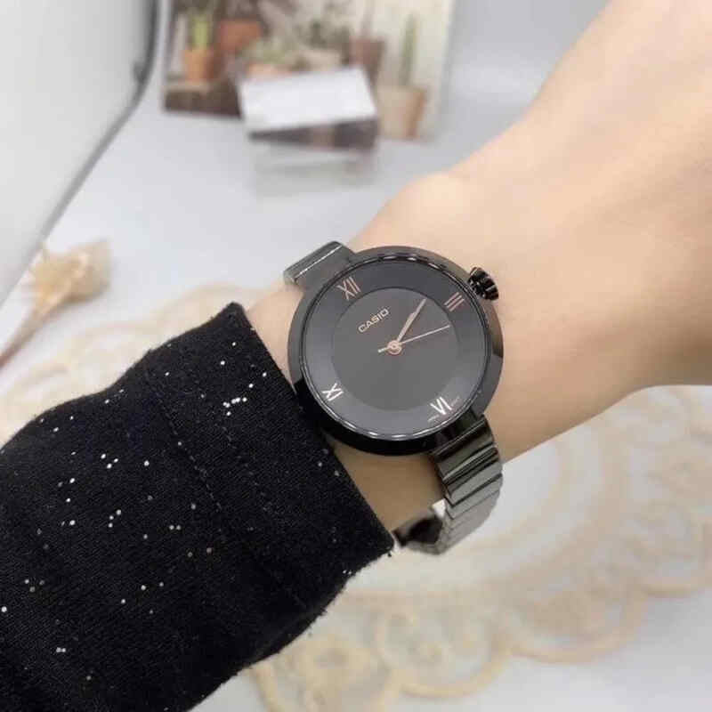 Casio LTP-E154B-1A Women Analog Watch with Black Stainless Steel Band