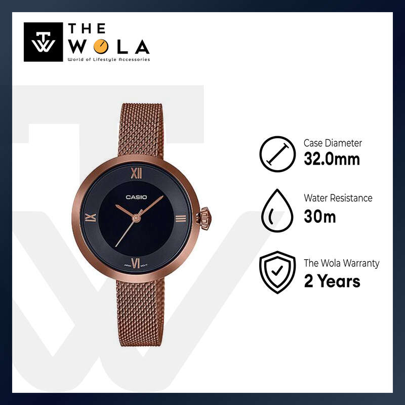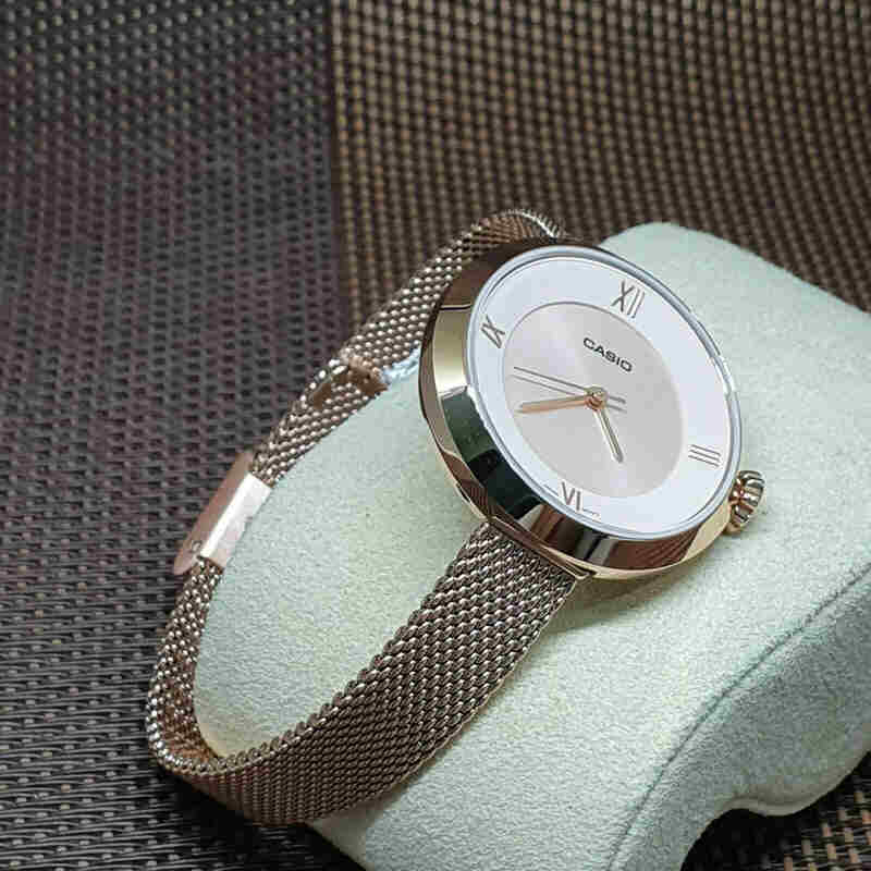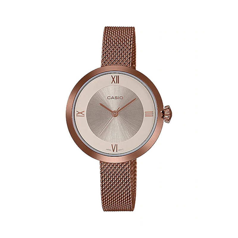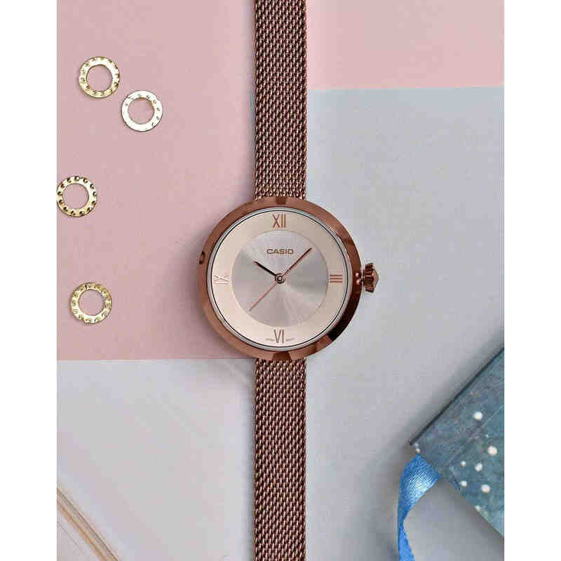 Casio LTP-E154MR-1A Women Analog Watch with Rose Gold Mesh Stainless Steel Band