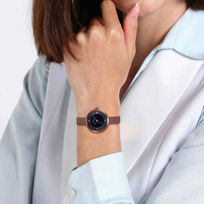 Casio LTP-E155MR-9B Women’s Analog Watch with Rose Gold Stainless Steel Mesh Band