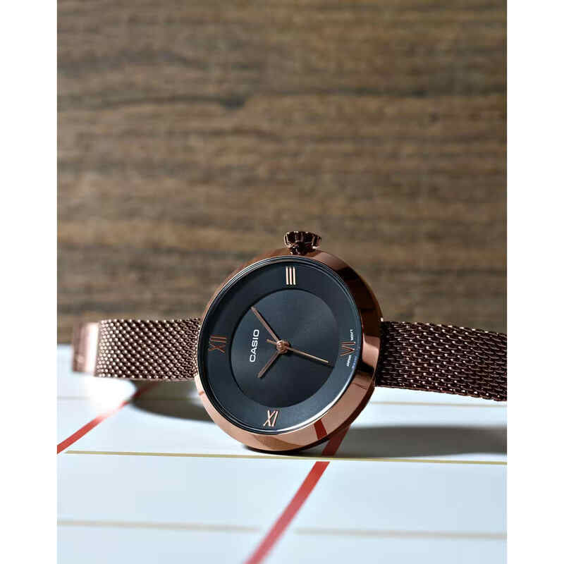 Casio LTP-E154MR-9A Women Analog Watch with Rose Gold Mesh Stainless Steel Band
