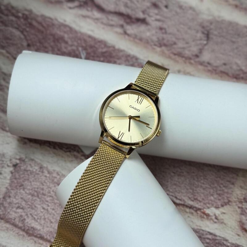 Casio LTP-E157MG-9A Women Analog Watch with Gold Stainless Steel Mesh Band