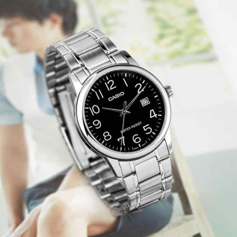 Casio LTP-V002D-1B Women Analog Watch with Silver Stainless Steel Band