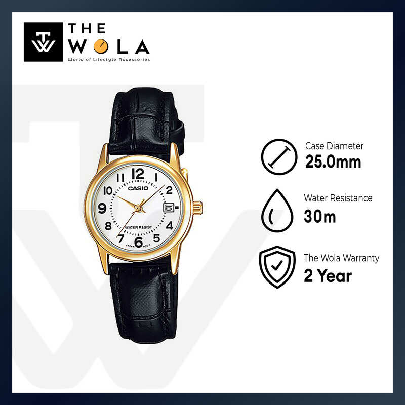 Casio LTP-V002GL-7B Women's Analog Watch with Black Leather Band