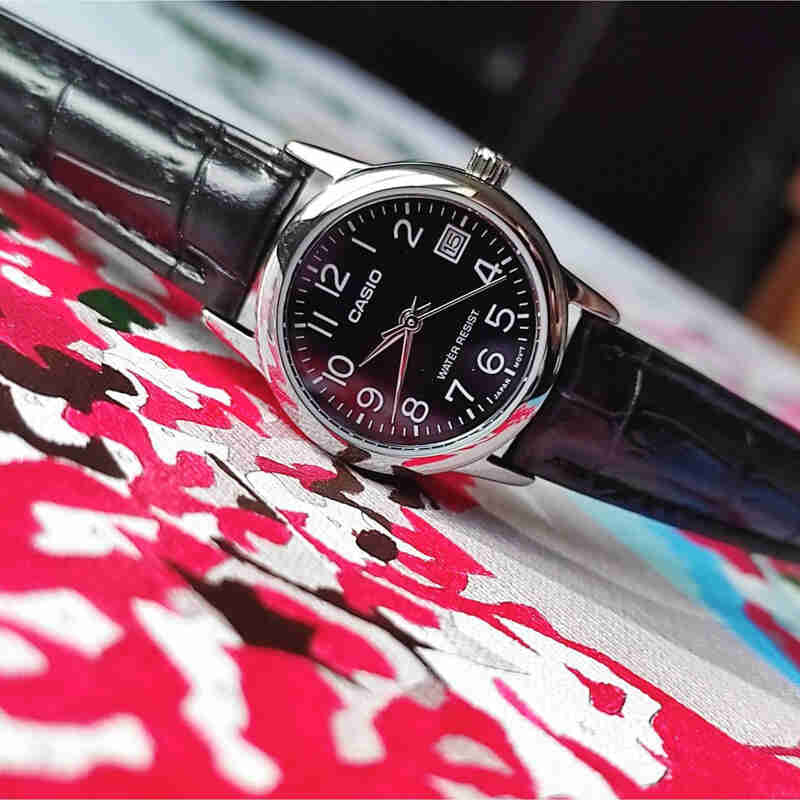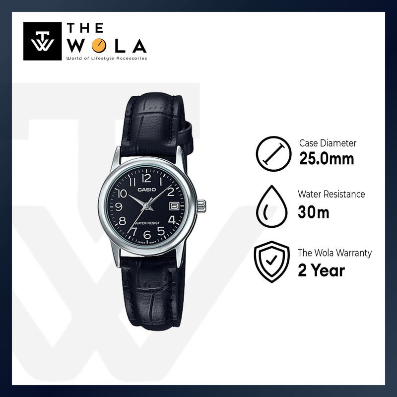 Casio LTP-V002L-1A Women Analog Watch with Black Leather Band