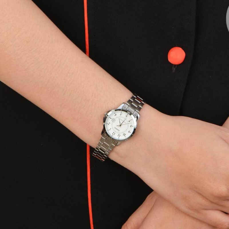 Casio LTP-V002D-1A Women Analog Watch with Silver Stainless Steel Band