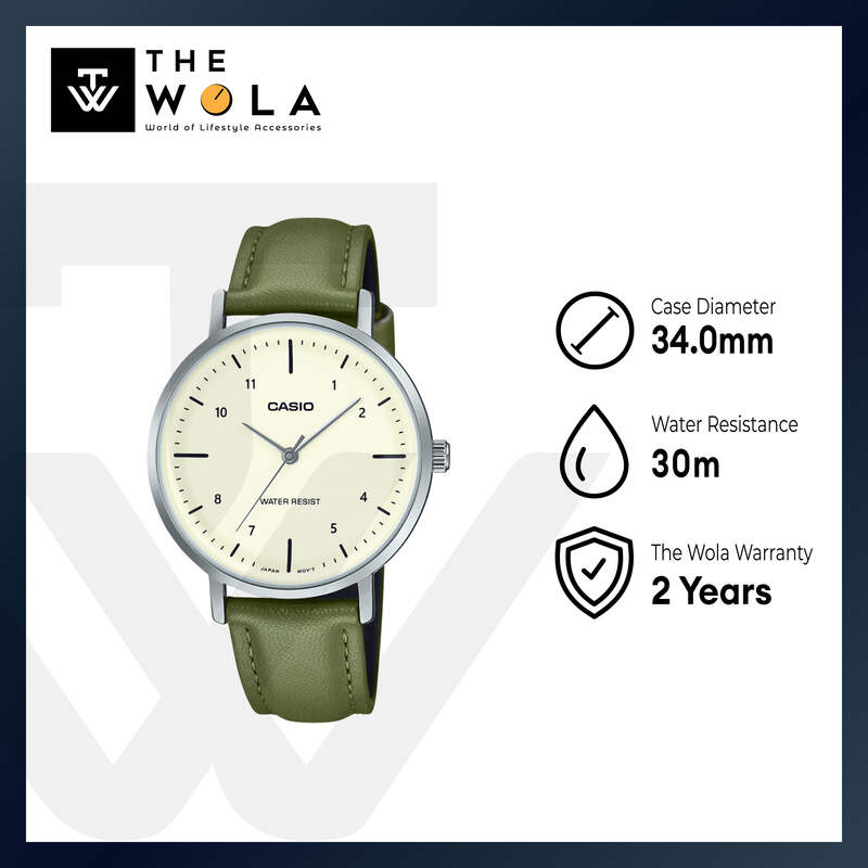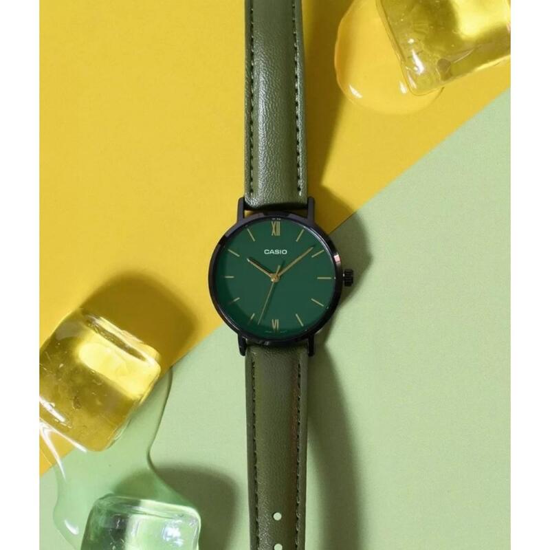 Casio LTP-VT02BL-3A Women Analog Watch with Green Leather Band