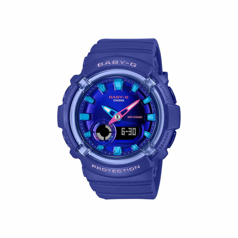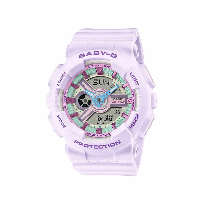 Featuring a variety of colors, digital-analog displays, and compact yet durable cases, Baby-G watches are ideal for everyday wear, sports, travel, or casual fashion. With advanced features such as world time, stopwatch, countdown timer, and LED illumination, these watches deliver both functionality and style in one package.