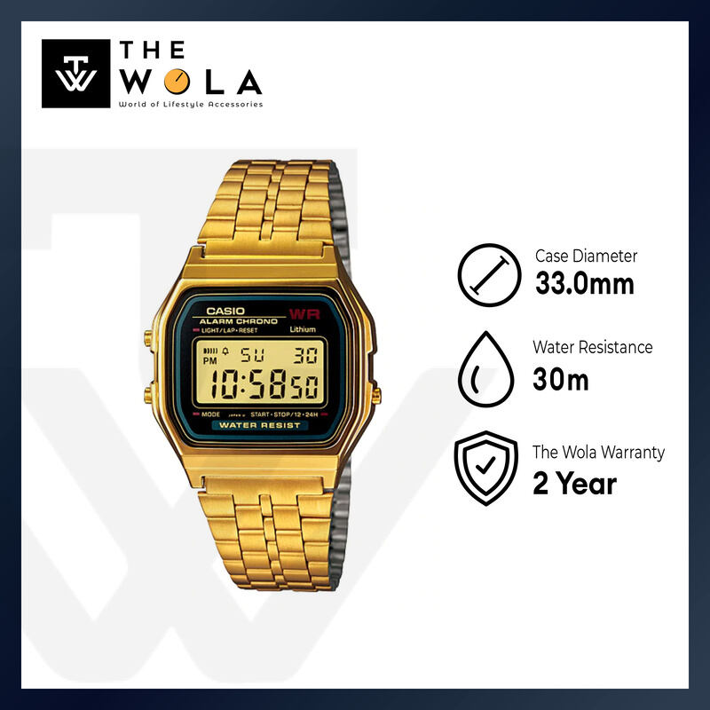 Casio A159WGEA-1 Unisex Digital Watch with Gold Stainless Steel Band