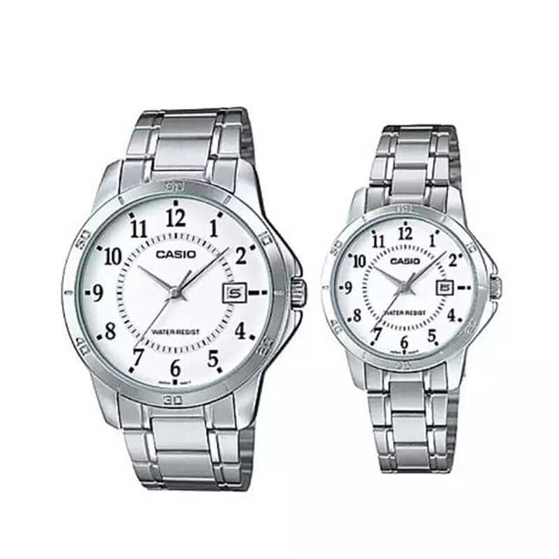 Casio Couple Watch Analog MTP-LTP-V004D-7B with Silver Stainless Steel Band