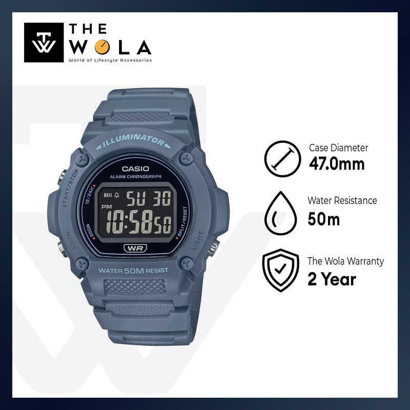 Casio W-219HC-2BV Men's Blue Resin Band Digital Sport Watch