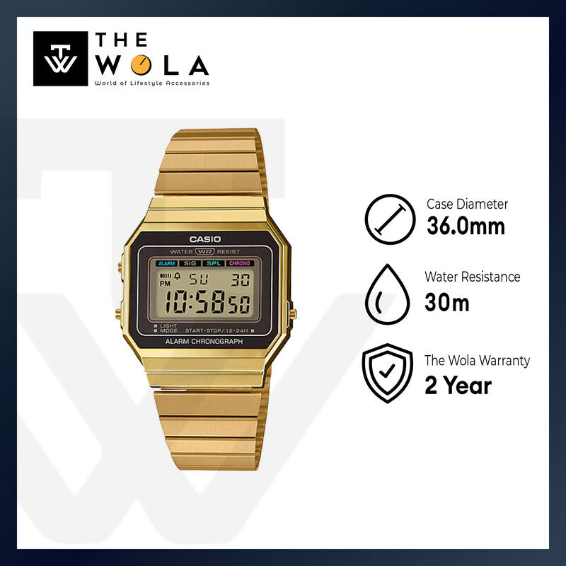 Casio A700WG-9A Unisex Digital Watch with Gold Stainless Steel Band