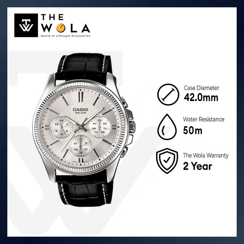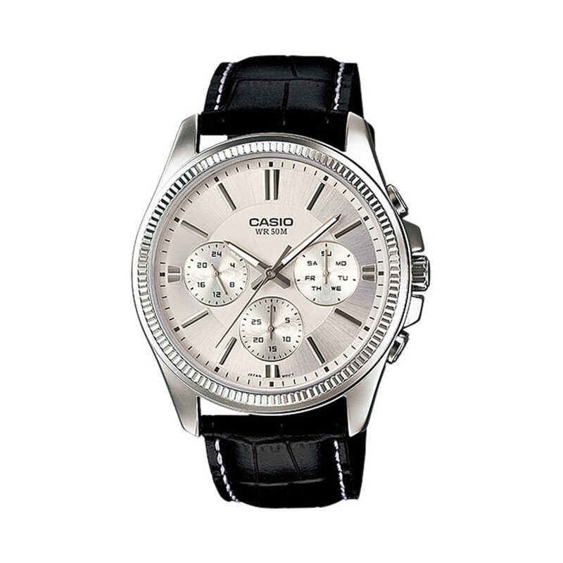 Casio Men Chronograph Watch MTP-1375L-7A Black Leather Strap