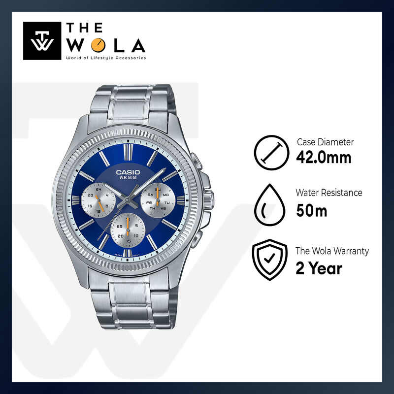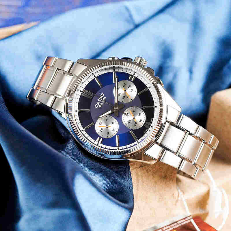 Casio Men's Chronograph Casual Watch MTP-1375D-2A1VDF Silver Stainless Steel Strap