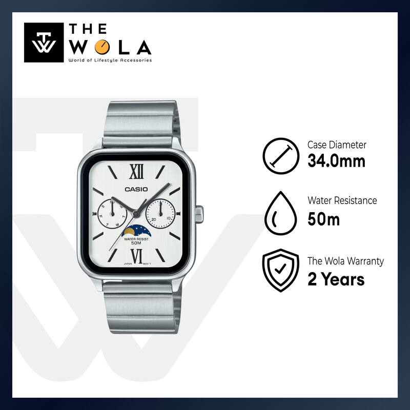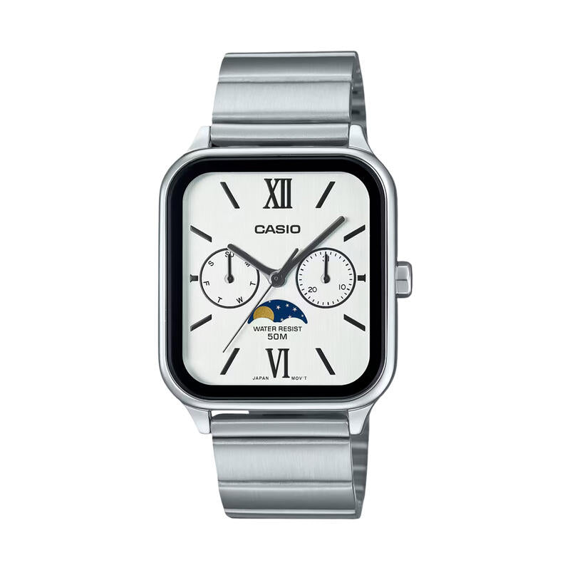 Casio Moon Phase Men Chronograph Watch MTP-M305D-7A2V Silver Stainless Steel Strap