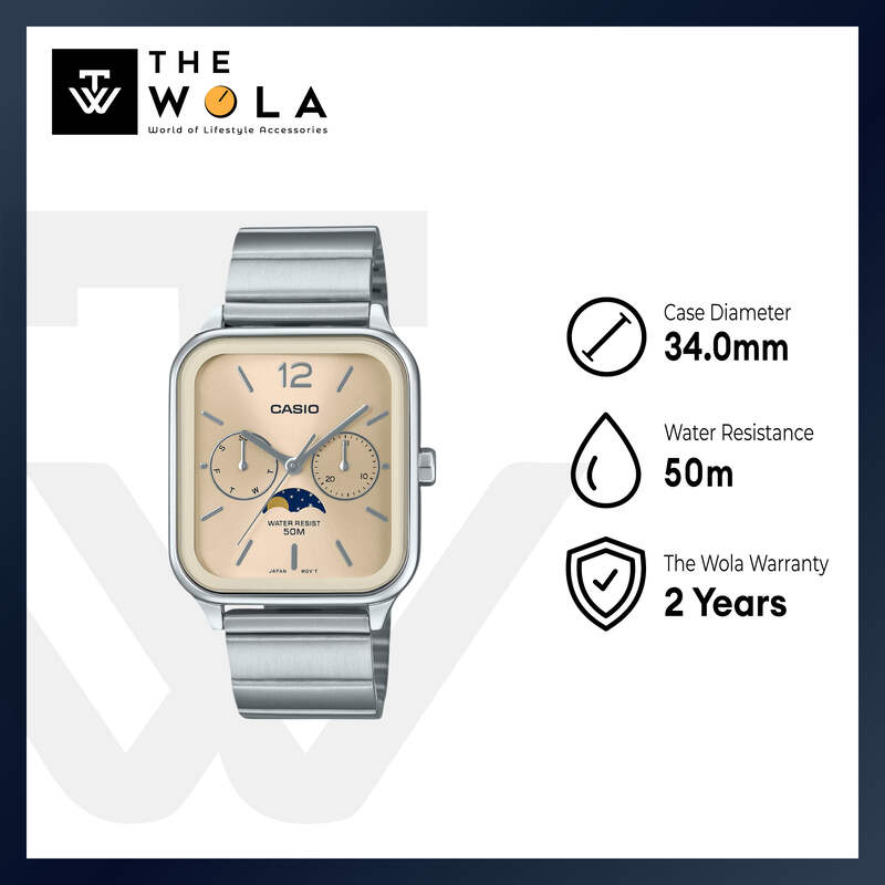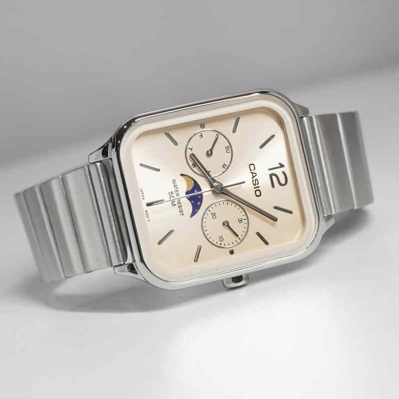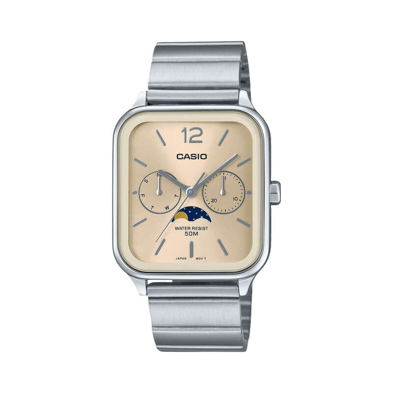 Casio Moon Phase Men Chronograph Watch MTP-M305D-9AV Silver Stainless Steel Strap