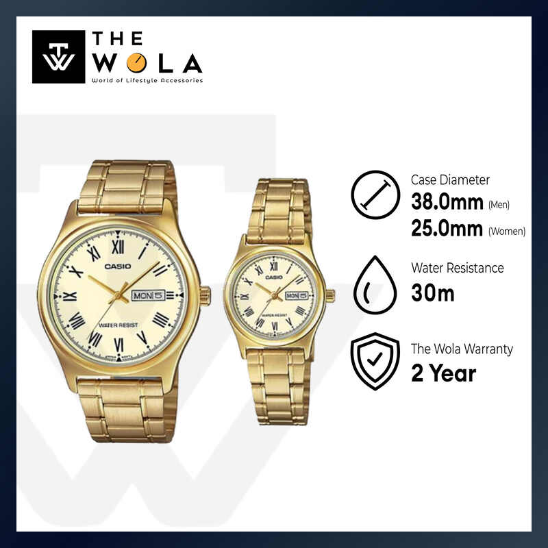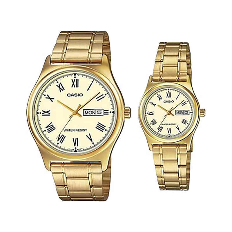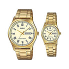 Casio Couple Analog Watch MTP-LTP-V006G-9B with Gold Stainless Steel Band