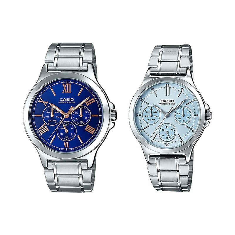 Casio Couple Analog Watch MTP-LTP-V300D-2A with Silver Stainless Steel Band