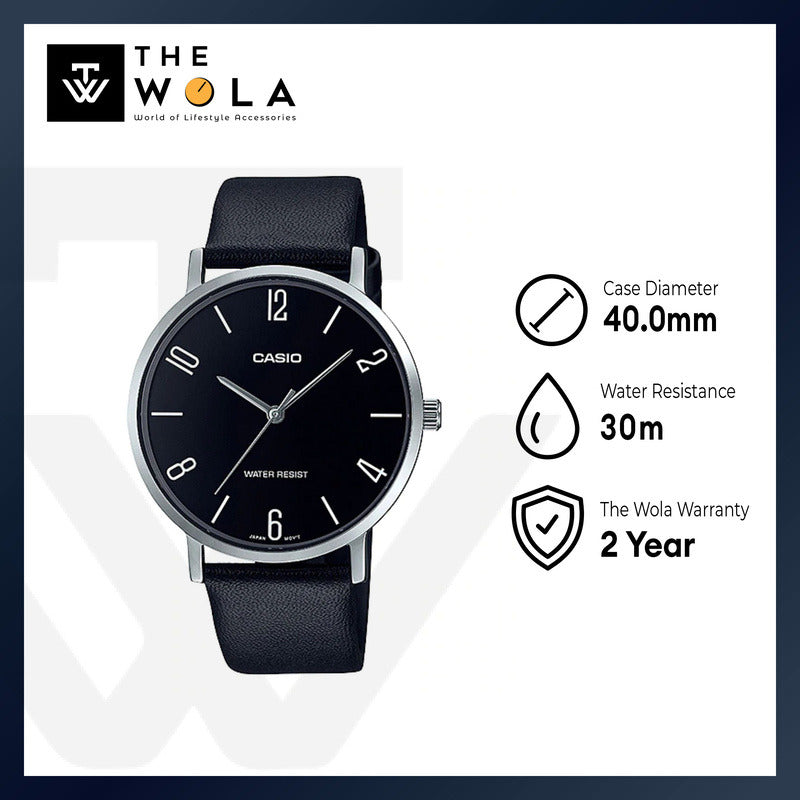 Casio Men Analog Watch MTP-VT01L-1B2 Black Leather Strap