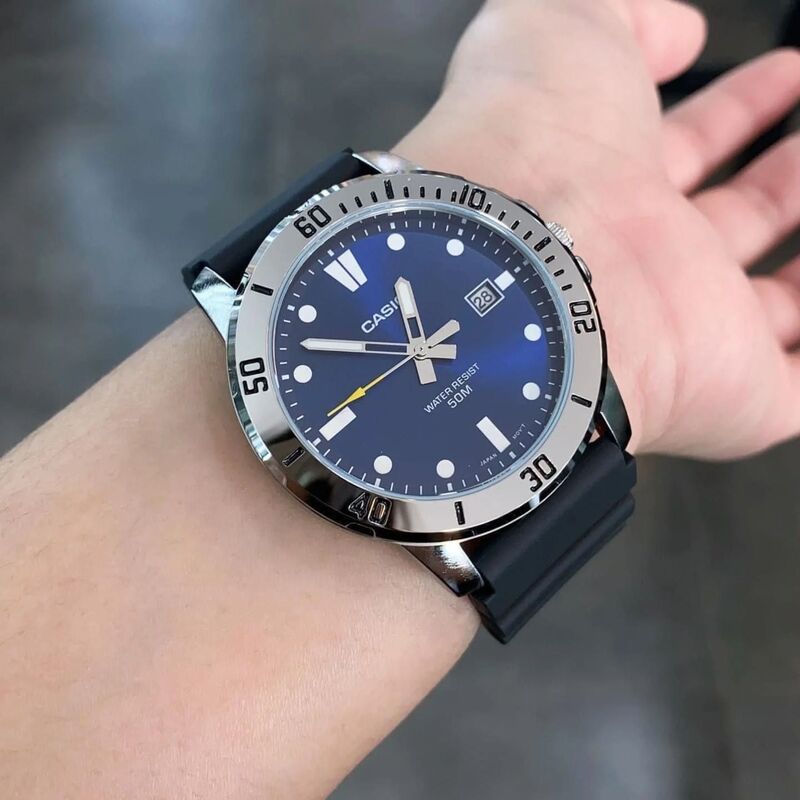 Casio Men's Analog Watch MTP-VD01-2EV Blue Dial with Black Resin Band