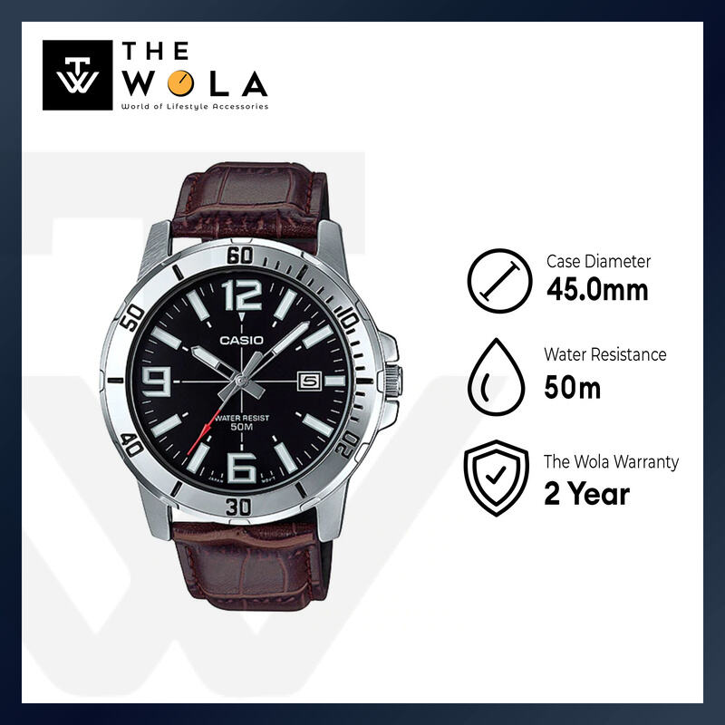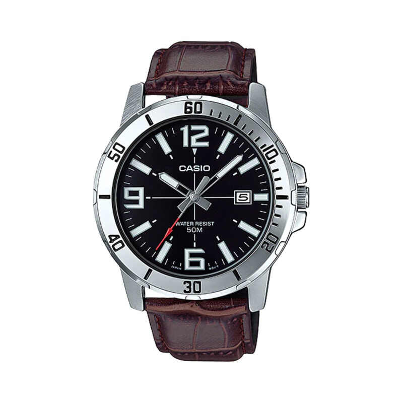 Casio Men's Analog Watch MTP-VD01L-1BV Brown Leather Band Watch for mens