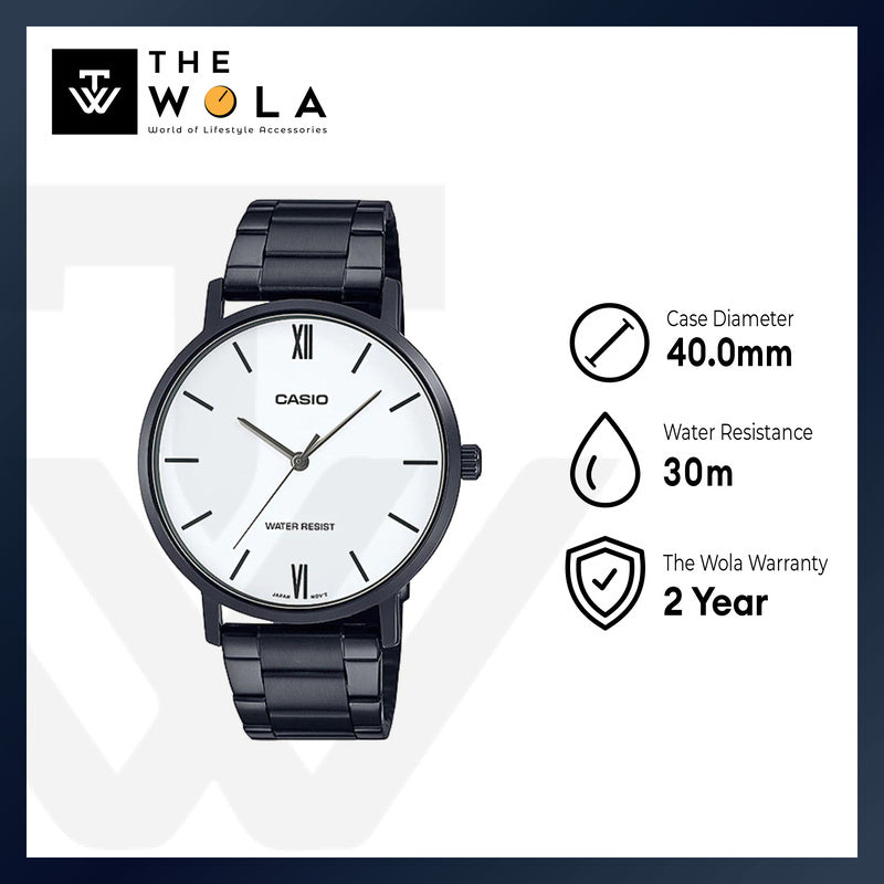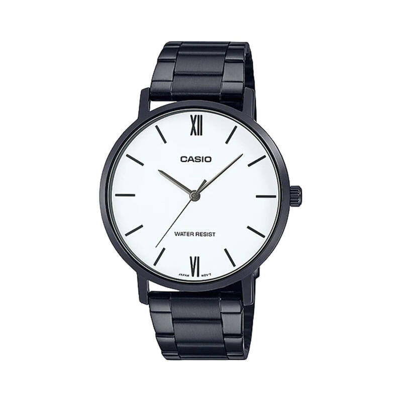 Casio Men's Analog Watch MTP-VT01B-7B White Dial with Black Stainless Steel Band Watch for Men