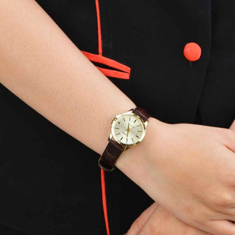 Casio LTP-V004GL-9A Women's Analog Watch with Brown Leather Band