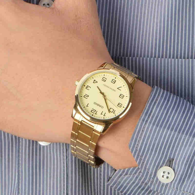 Casio MTP-V001G-9B Men Analog Watch with Gold Stainless Steel Band