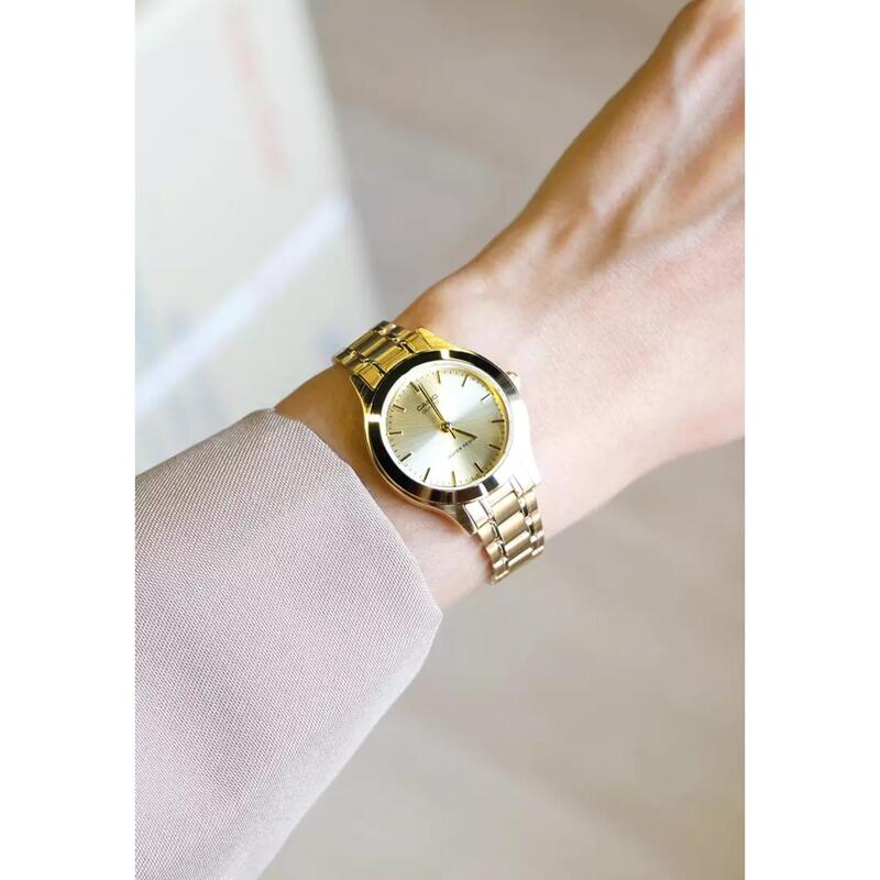 • Case and bezel material: Gold tone