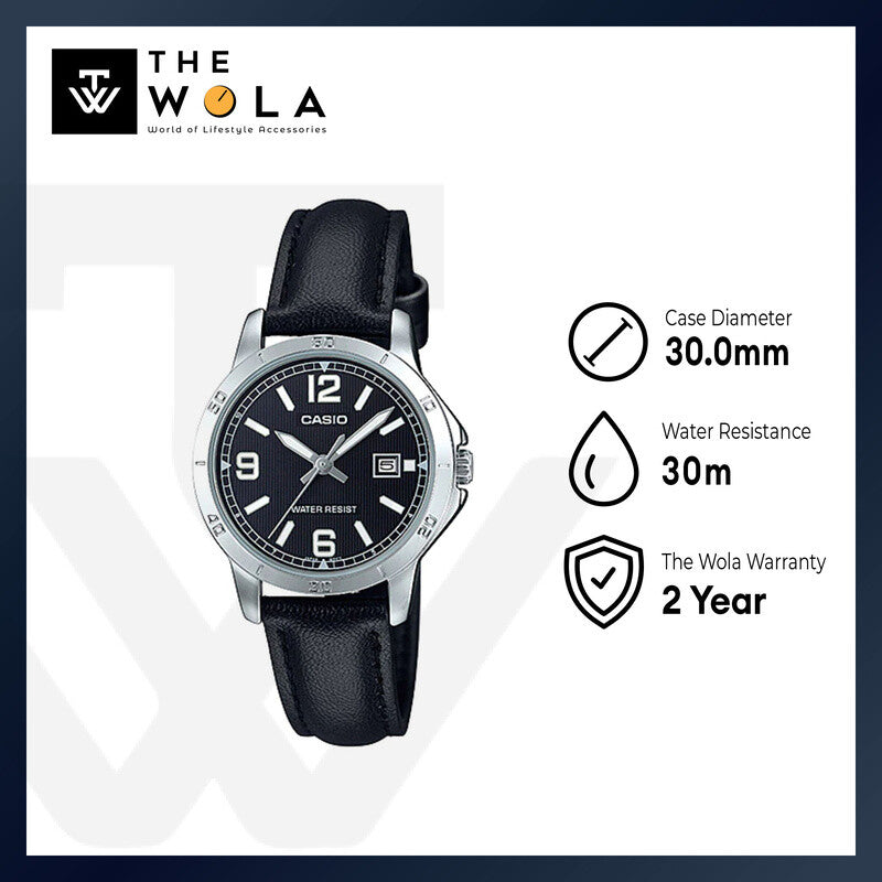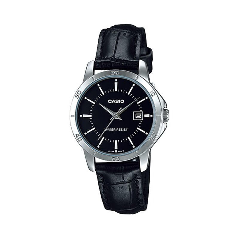 Casio LTP-V004L-1B Women Analog Watch with Black Leather Band