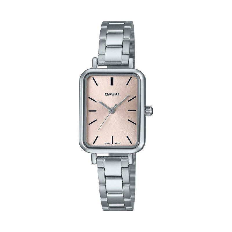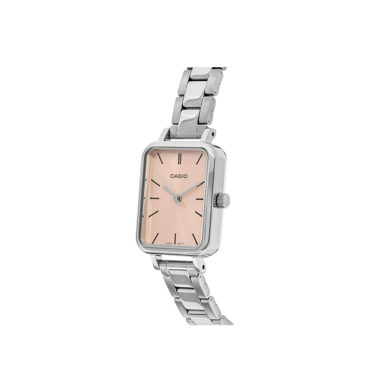 Casio Women's Analog Watch LTP-V009D-4E Pink Dial with Silver Stainless Steel Band Ladies Watch