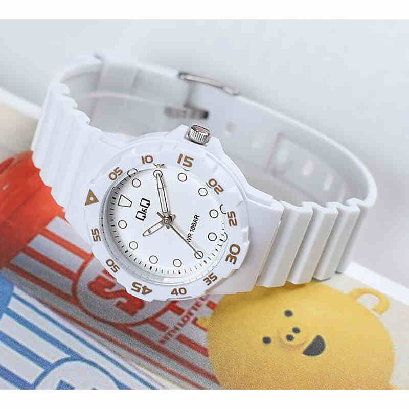 Q&Q Watch By Citizen V07A-002VY Unisex Analog Watch with White Resin Strap