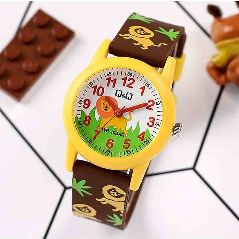 Q&Q Watch By Citizen V22A-019VY Kids Analog Watch with Brown Resin Strap