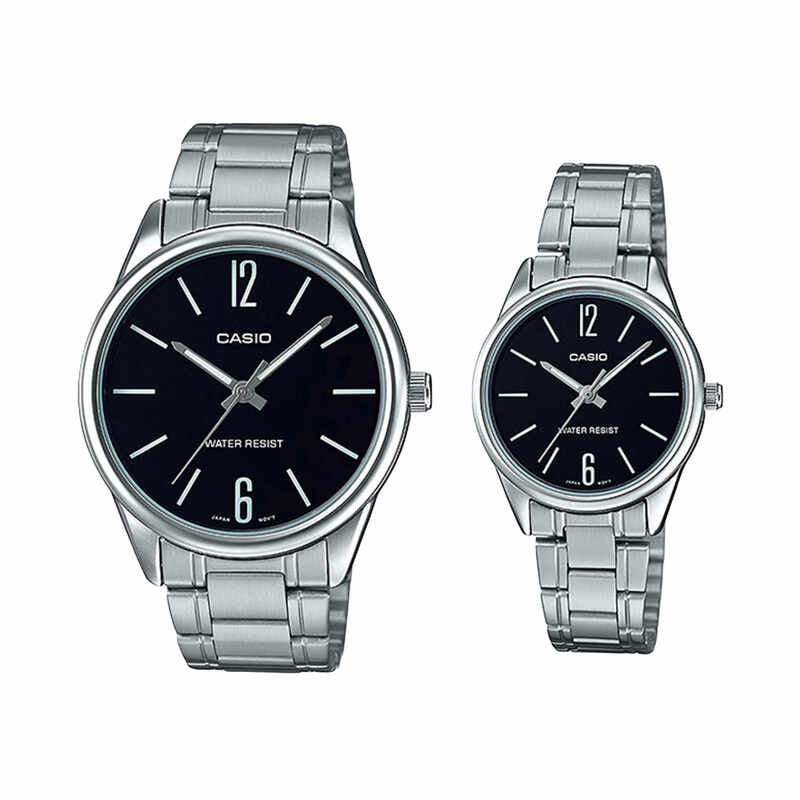 Casio Couple Analog Watch MTP-LTP-V005D-1B with Silver Stainless Steel Band