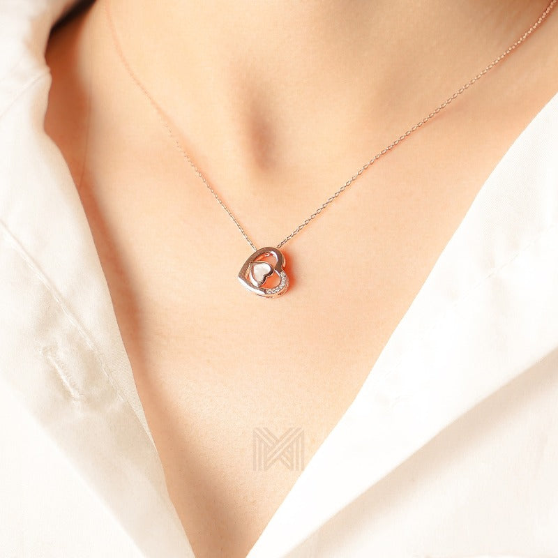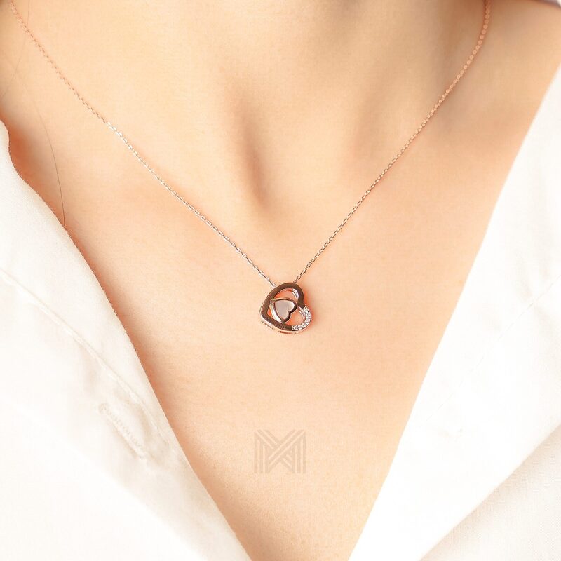 MILLENNE Millennia 2000 Heart Studded Cubic Zirconia Rose Gold Necklace with 925 Sterling Silver