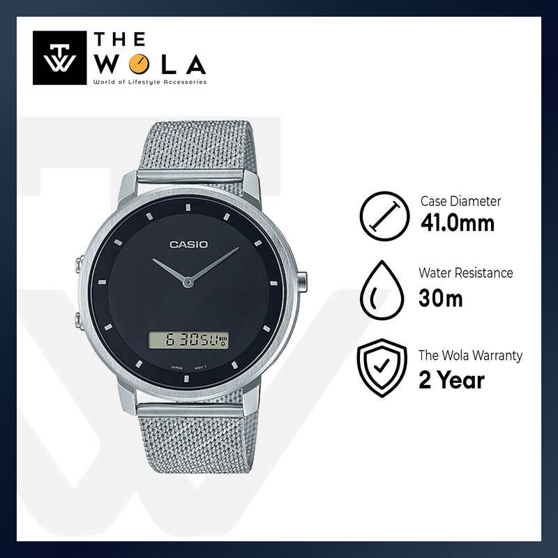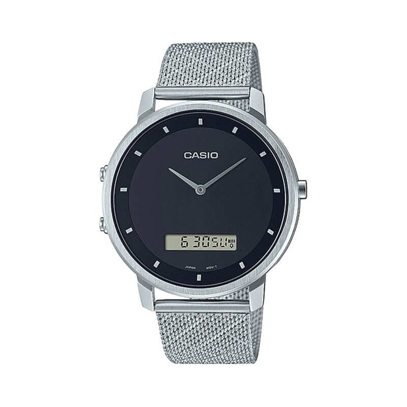 Casio Men's Analog-Digital Watch MTP-B200M-1E Silver Stainless Steel Mesh Band Watch for Men
