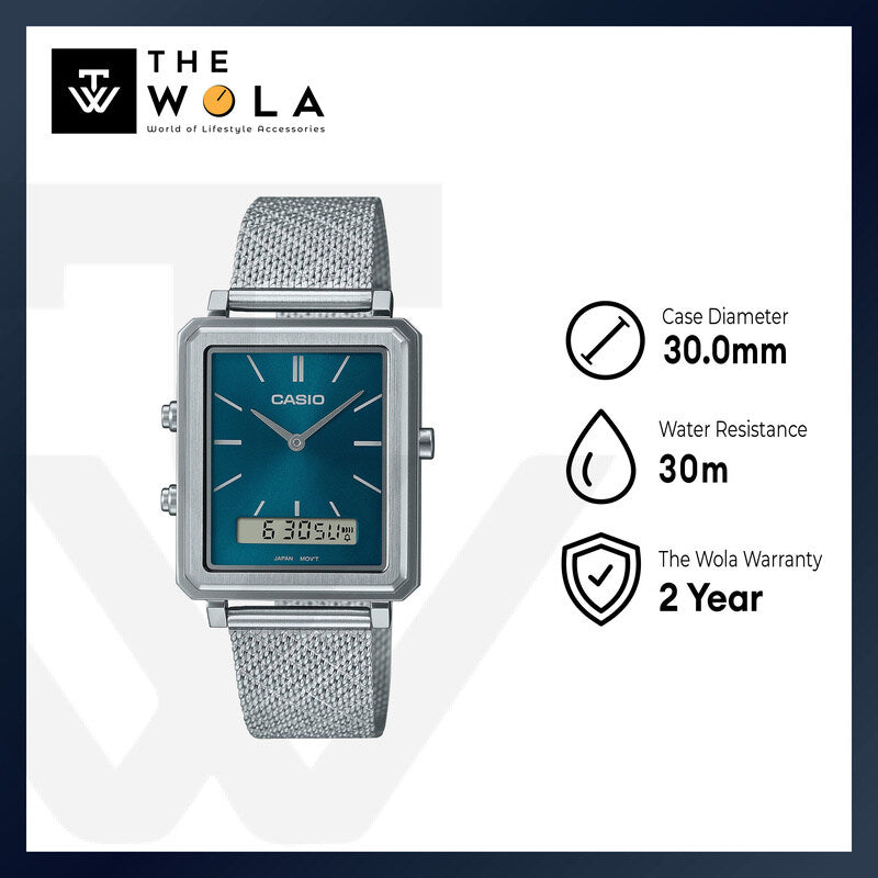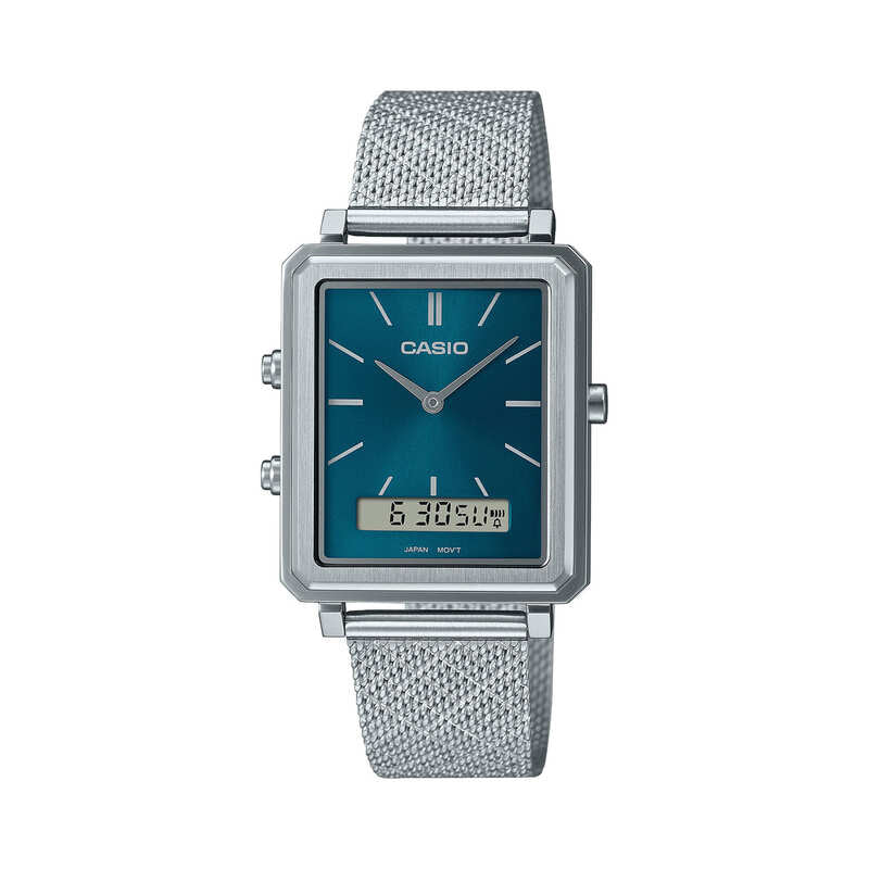 Casio Men's Analog-Digital Watch MTP-B205M-3E Green dial with Silver Stainless Steel Mesh Band Watch for men