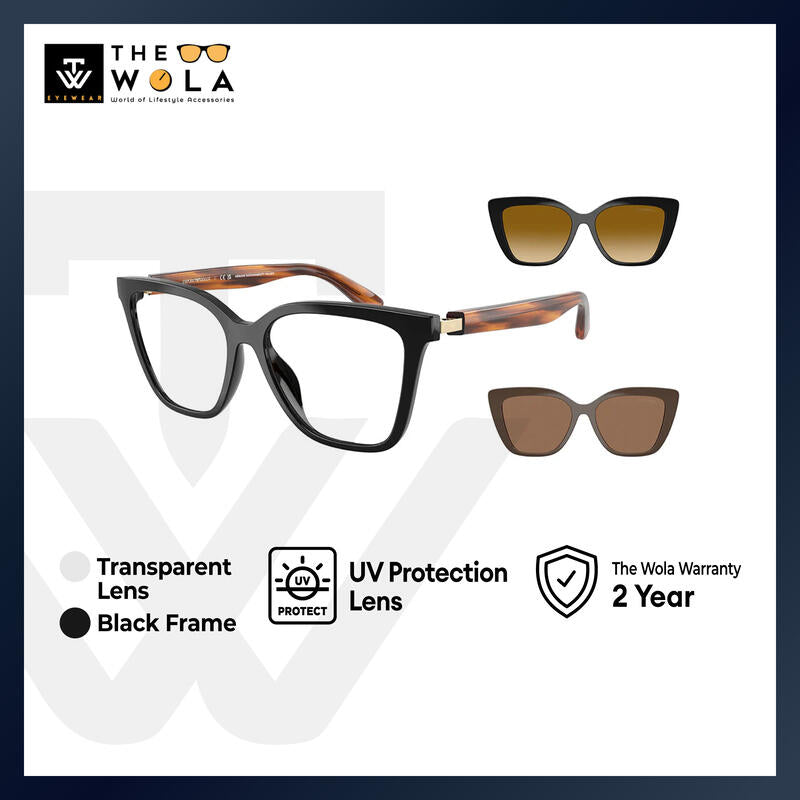 Emporio Armani Women's Cat Eye Frame Black Injected Clip on Sunglasses - EA4254U