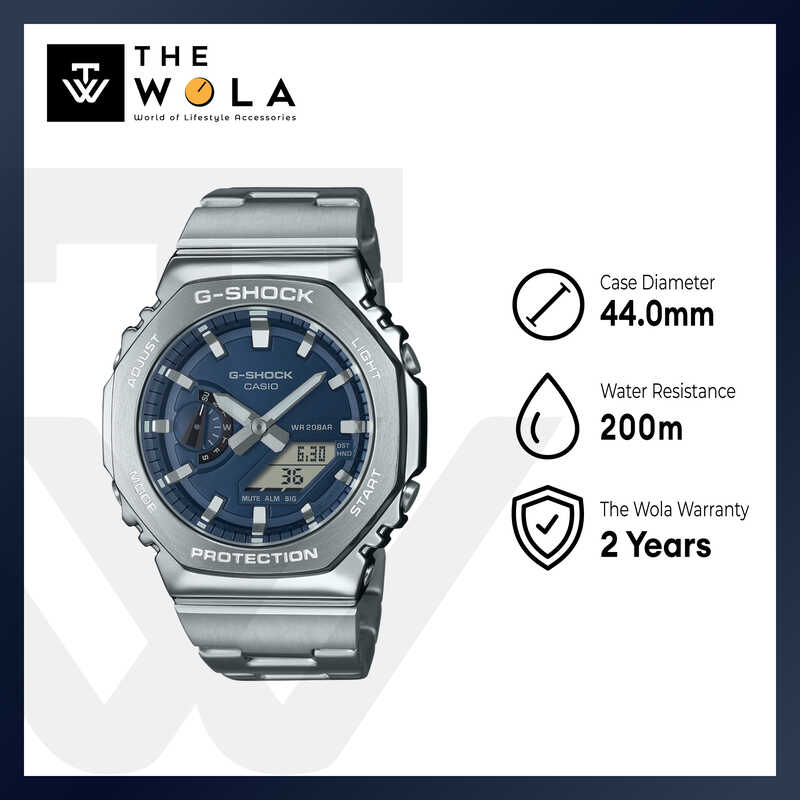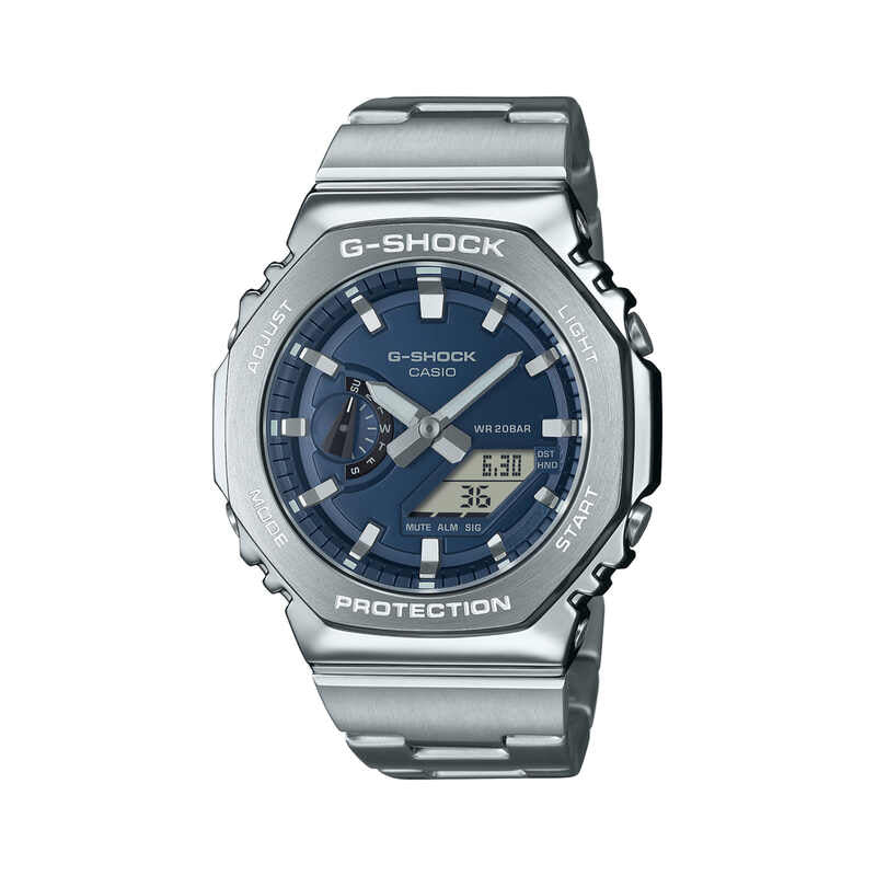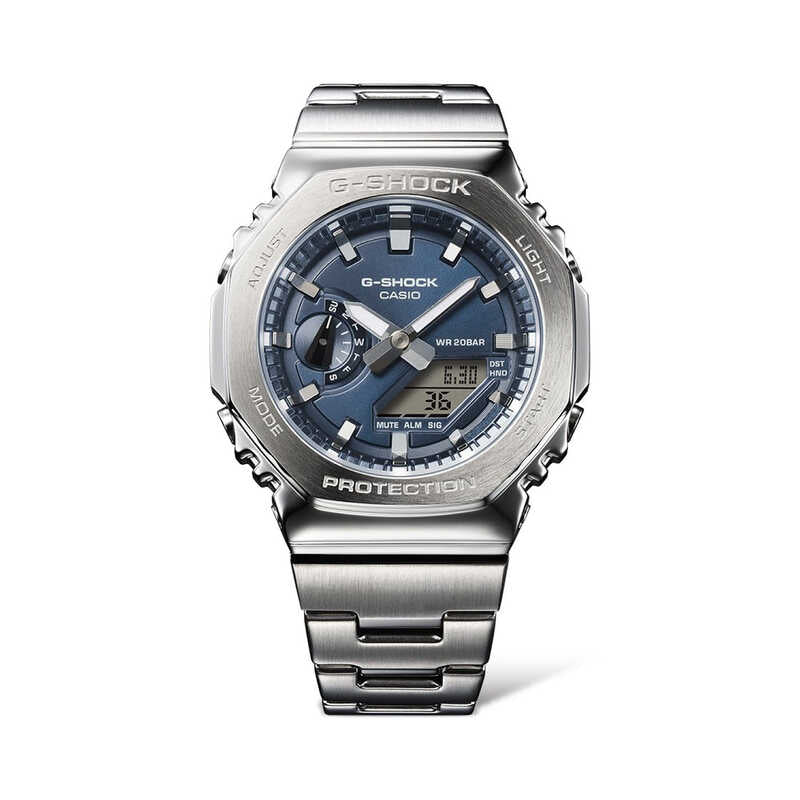 Casio G-Shock GM-2110D-2B Men Analog-Digital Watch Silver Stainless Steel Strap