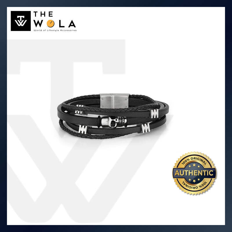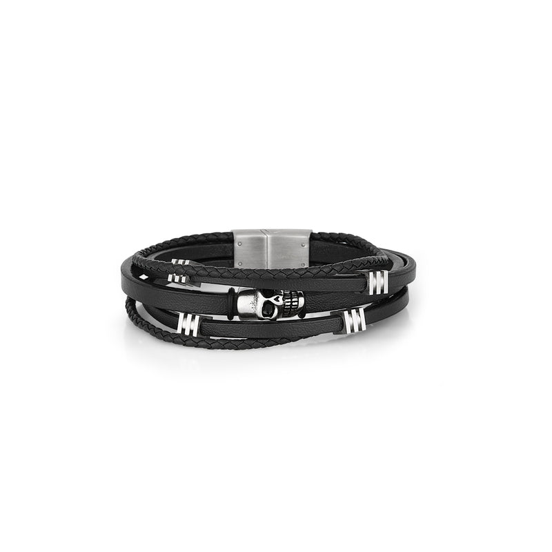 Daniel Klein Skull Men's Bracelet DKJ.2.1002-2 Black Cowhide Braided Multi Layer Men Bangle