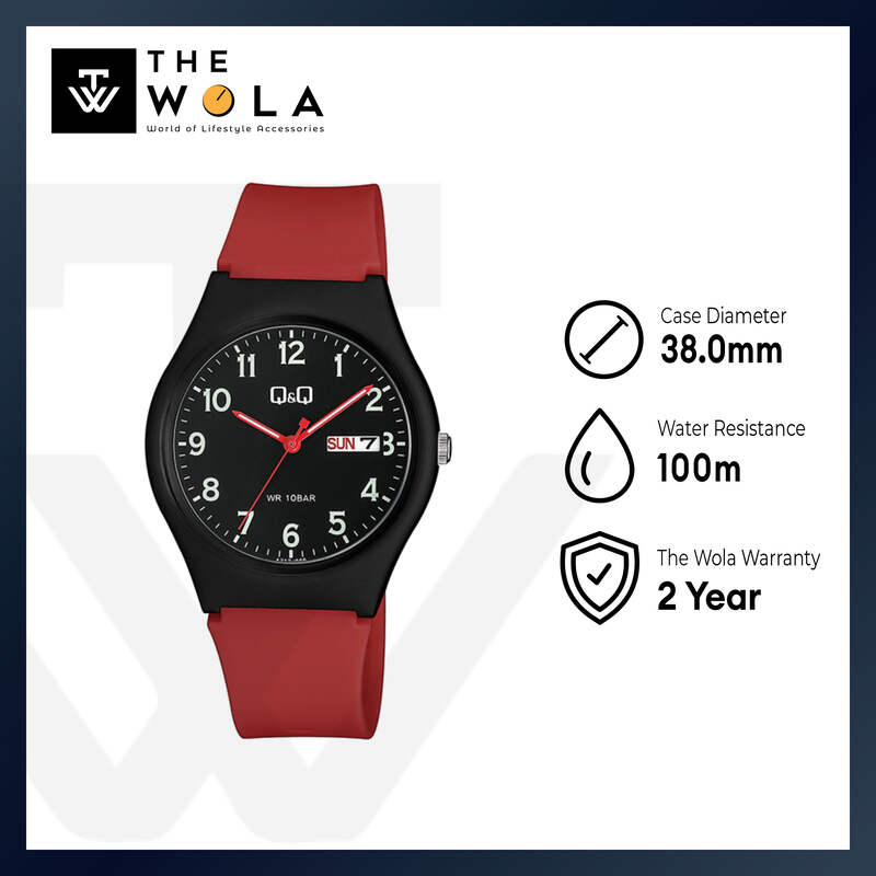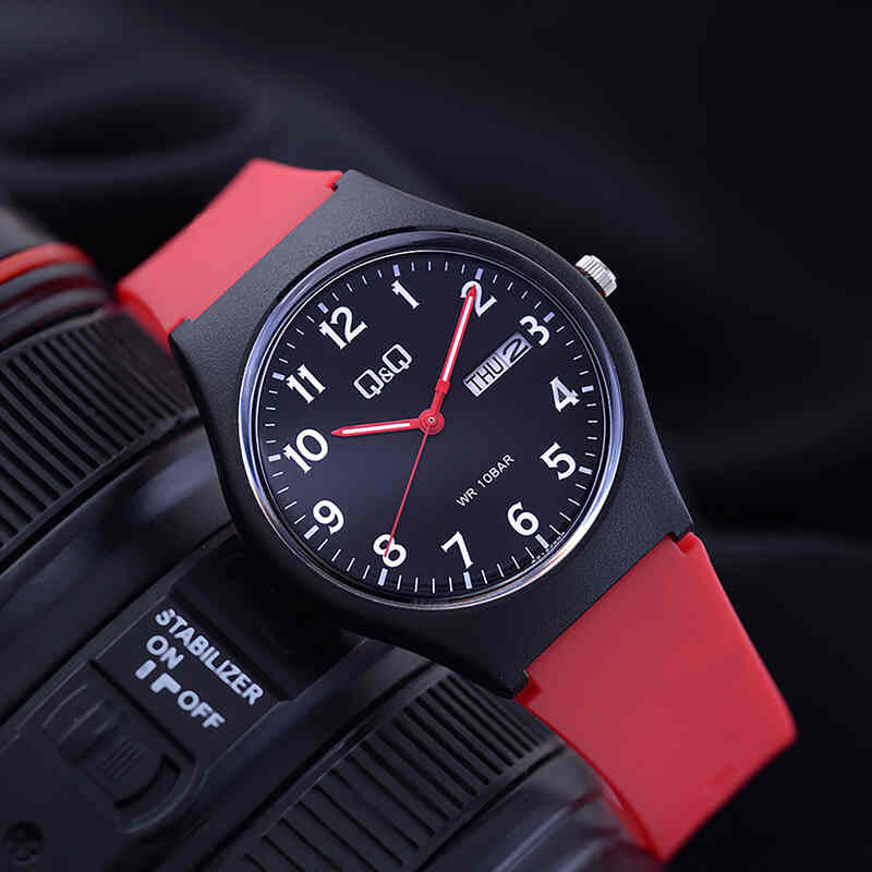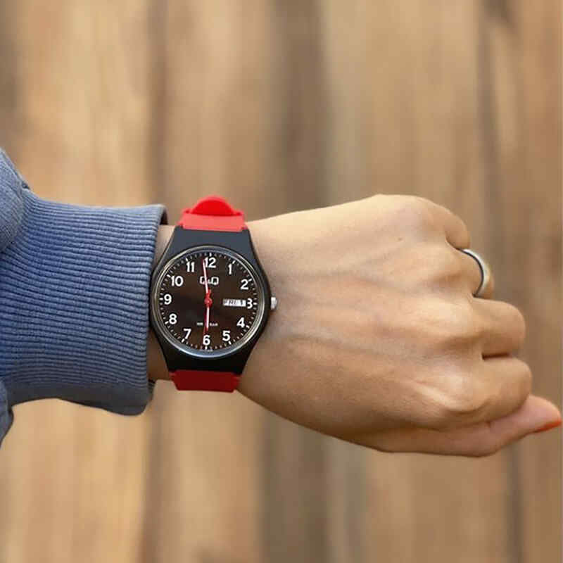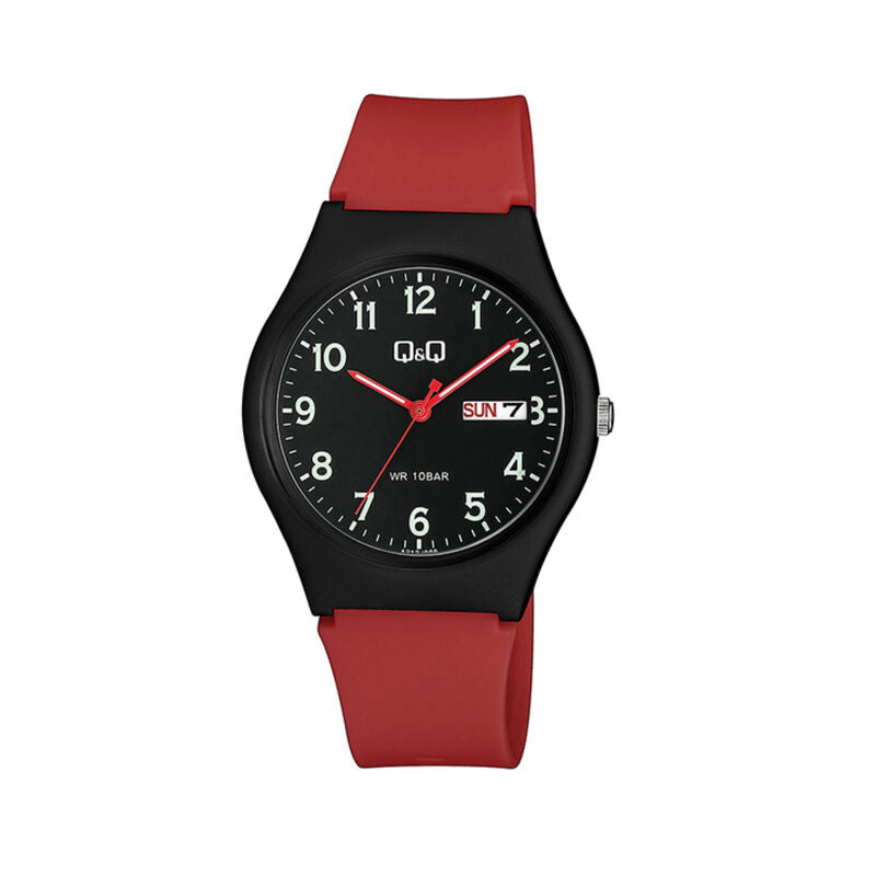 Q&Q Watch By Citizen A212J009Y Men Analog Watch with Red Rubber Strap