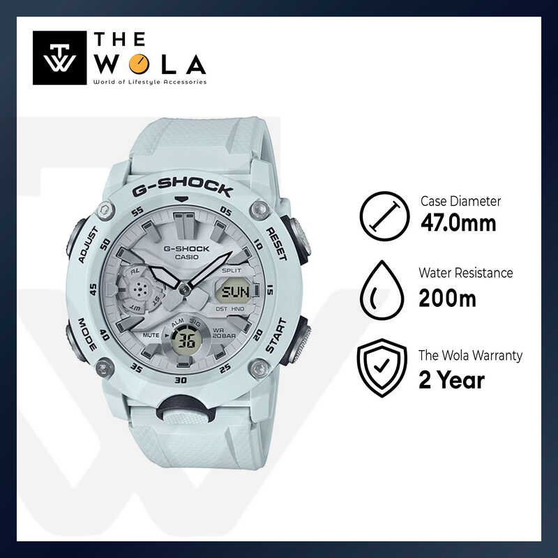 Casio G-Shock Men's Analog-Digial Watch GA-2000S-7A Carbon Core Guard White Resin Band Sports Watch