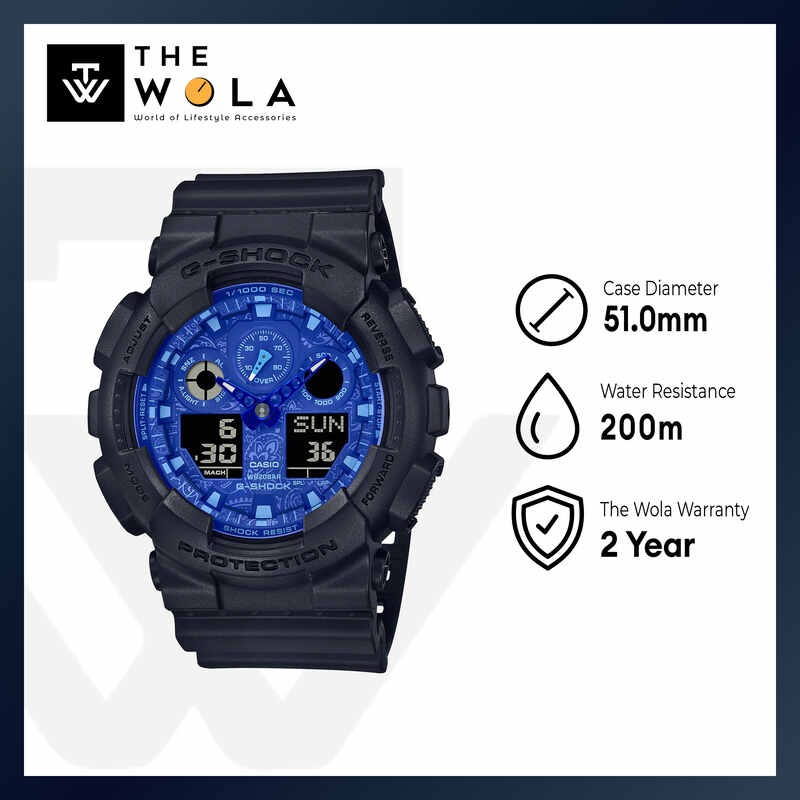 Casio G-Shock Men's Analog-Digital Watch GA-100BP-1A Black Resin with Blue dial Sport Watch