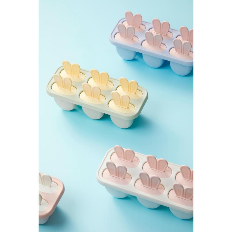 Inochi Kari Bunny-Ear Popsicle Mold – BPA-Free 4-Compartment Ice Cream Tray with Antibacterial Ag+ Technology