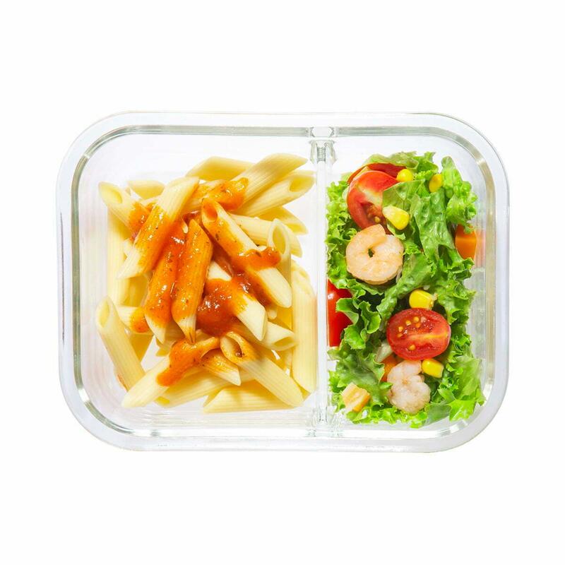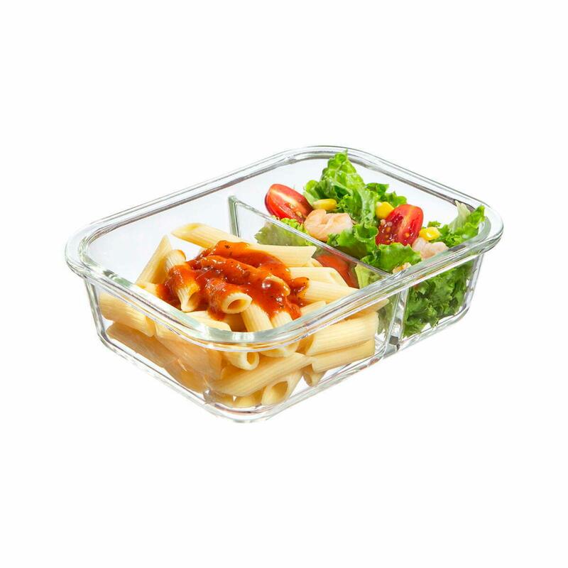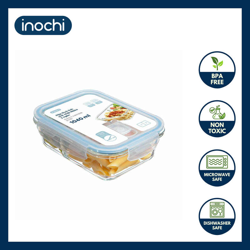 Inochi Nikko Rectangular 2-Compartment Glass Food Storage Container | BPA-Free, Airtight Lid, Microwave & Oven Safe